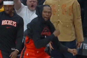 比自己扣了还兴奋!谢泼德双手暴扣 替补席的杜兰特跳进场内庆祝