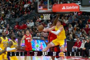 拉拉维亚篮下拉杆被筐帽 火箭挑战 裁判认定有身体接触 挑战失败