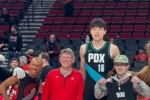 赛后,作为球队常规赛收官战的保留节目,开拓者球员为部分季票球迷送上签名球衣,杨瀚森把自己的球衣送给了一位从1971年就开始支持球队的老球迷。
