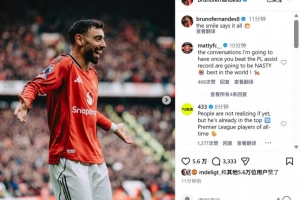 本场比赛B费助攻双响,赛后他也在个人社媒晒出本场庆祝照,配文写道:“微笑说明了一切!”
